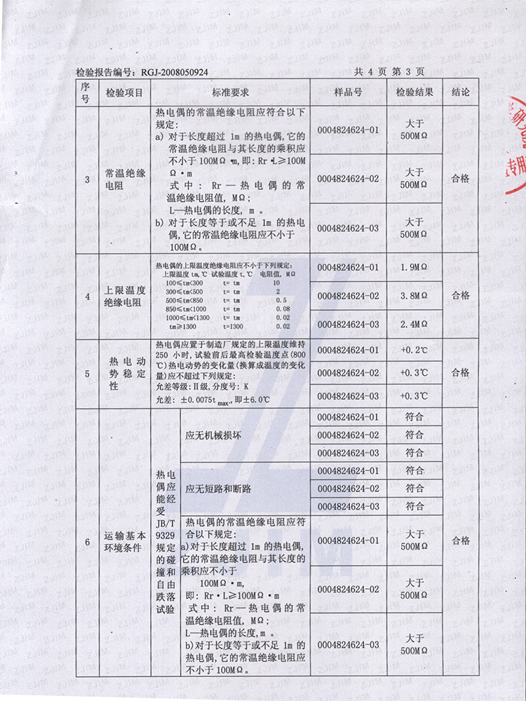 2008年度第2季度浙江省產(chǎn)品質(zhì)量監(jiān)督抽查報告(工業(yè)熱電偶)